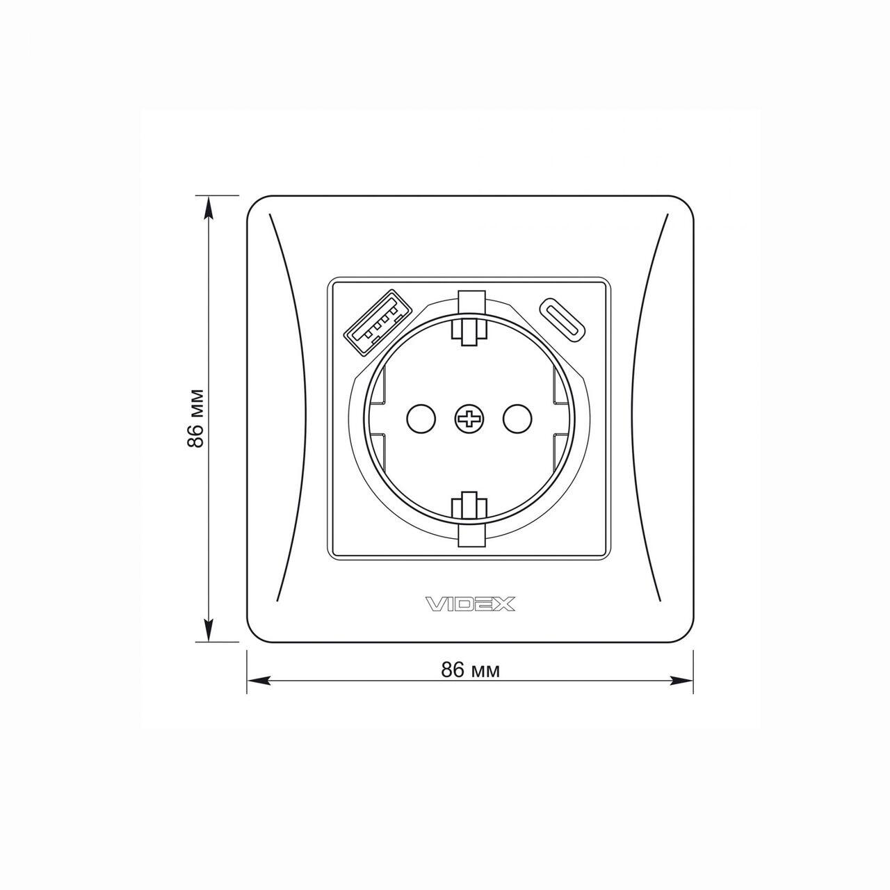 Priză simplă schuko cu USB-A+USB-C negru grafit VIDEX BINERA.
