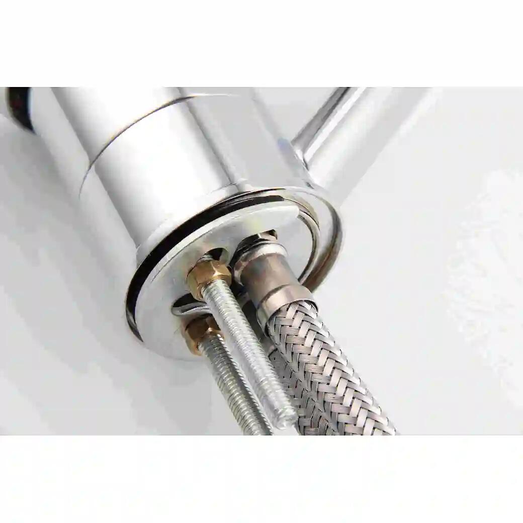 Baterie de bucătărie de calitate superioară, cu montare pe chiuvetă, finisaj cromat și nichelat, ideală pentru bucătării moderne sau clasice. Are un design cu o singură manetă, cartuș ceramic durabil și un stil clasic, ce oferă funcționalitate și eleganță. Instalarea se face ușor, printr-o singură găurire.