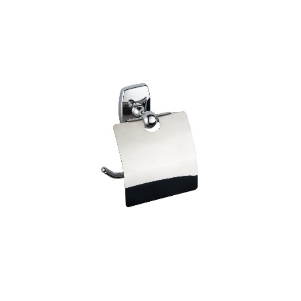 Suport cu capac pentru hârtie igienică, aliaj zinc + inox, cromat.