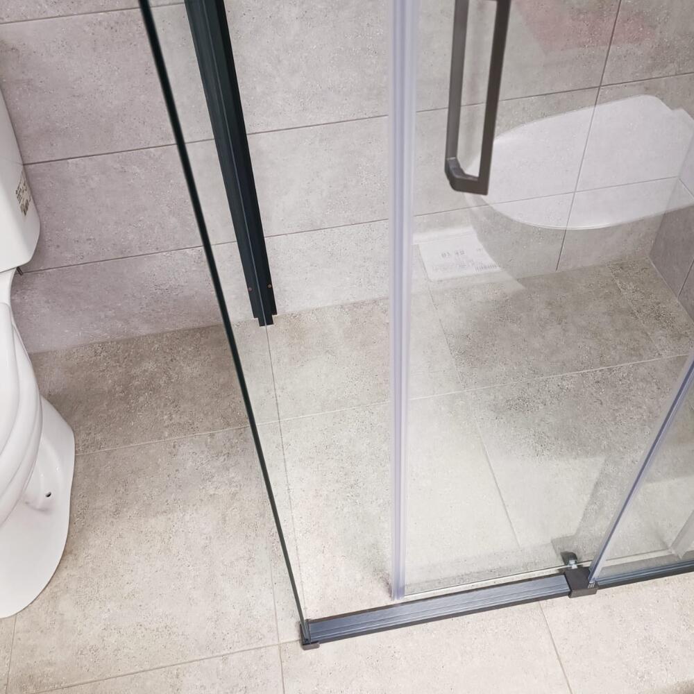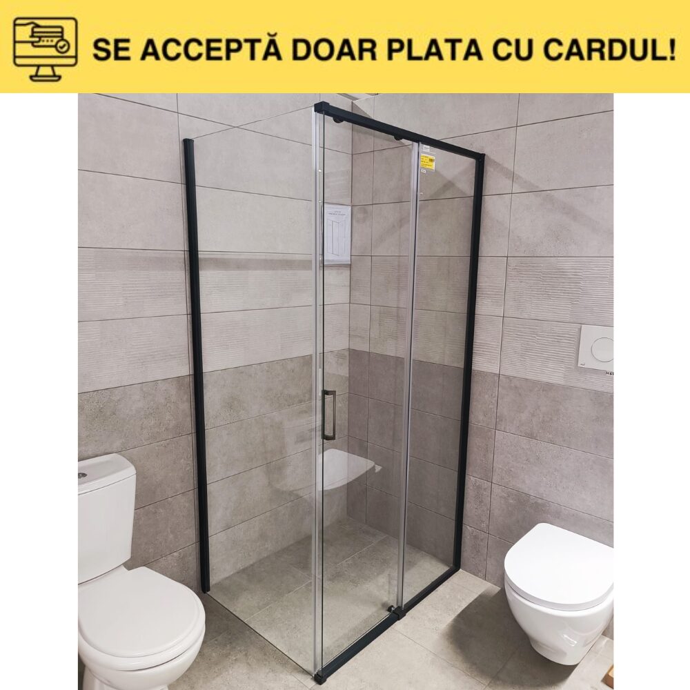 Cabina de duș este realizată cu sticlă securizată de 6 mm (transparentă), cadru din aluminiu (culoare gun metal), mânere din aliaj de zinc, ghidaj inferior cu montaj facil și role cu arc ușor de întreținut, asigură deschiderea și închiderea ușoară, confort și durabilitate.