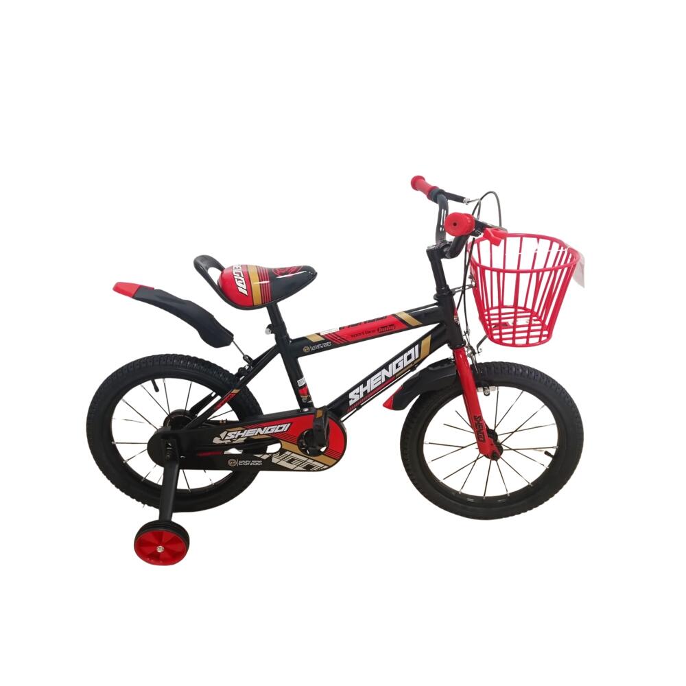 Bicicletă pentru copii, practică și rezistentă, echipată cu roți ajutătoare pentru siguranță și echilibru.