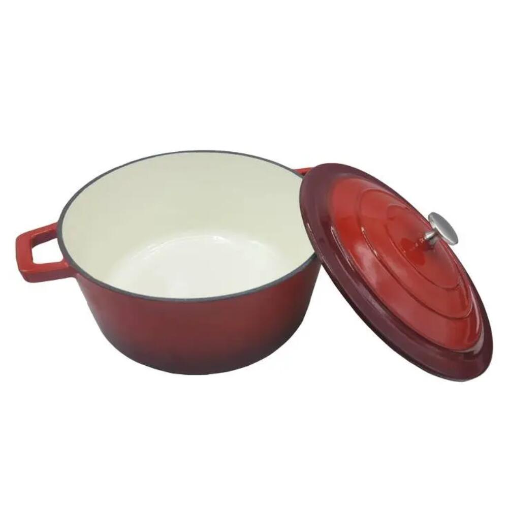 Finisajul emailat protejează fonta împotriva coroziunii, împiedică lipirea alimentelor și facilitează curățarea. Designul elegant, în culoare roșu intens cu interior crem, transformă setul într-o alegere practică și estetică pentru orice bucătărie.