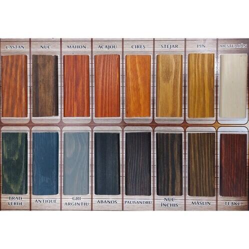 Utilizare: se recomandă pentru colorarea suprafețelor din lemn masiv sau furniruit și în special al mobilei, conform cartelei de culori. Dupa colorare, produsele se pot grundui și lăcui.