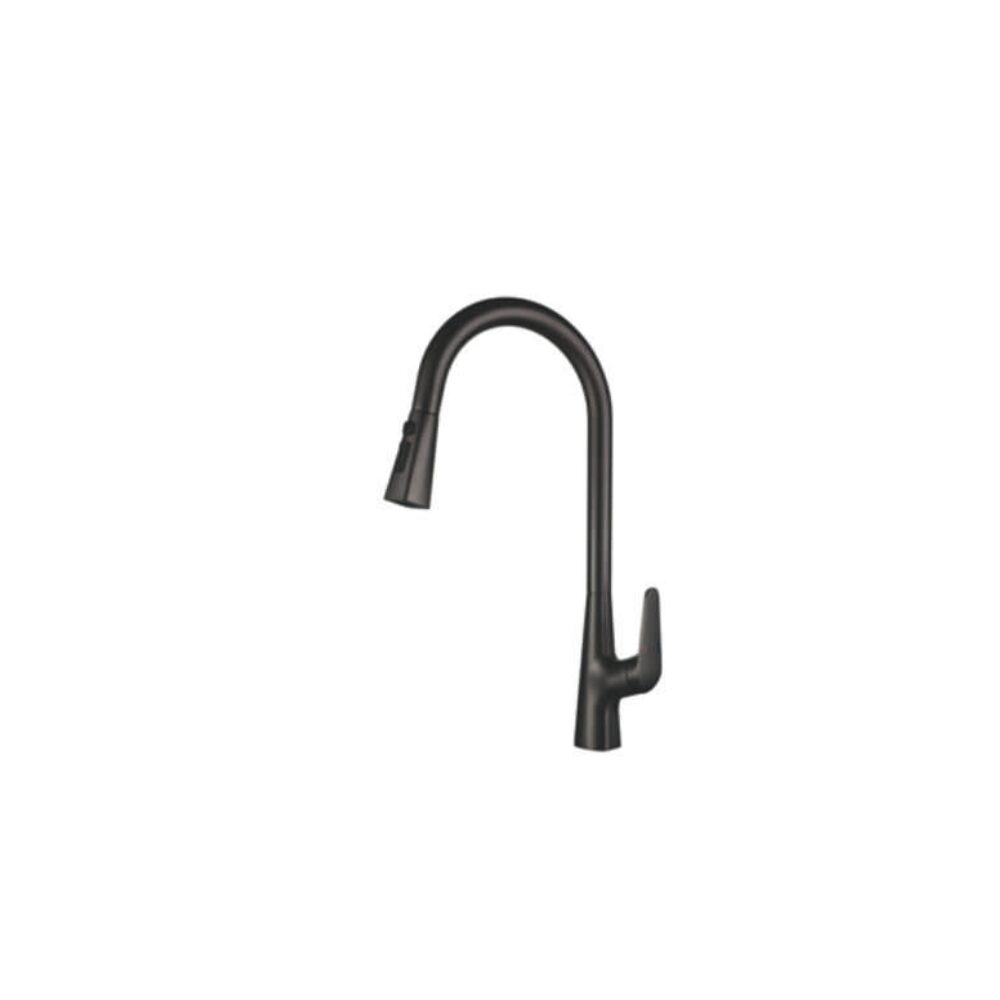 Baterie pentru chiuvetă bucătărie, fabricată din alamă, finisaj negru mat.