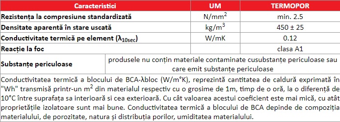 BCA-ul TERMOPOR asigură un confort termic optim în interiorul clădirii tale, păstrează iarna căldura și vara răcoarea. Folosind acest tip de BCA iţi vei reduce cheltuielile cu întreținerea datorită unui bun coeficient de izolare termică! Vei locui într-un mediu sănătos deoarece păstrează un nivel optim de umiditate conducând la prevenirea condensului și a problemelor cauzate de mucegai. Foloseşte BCA-ul TERMOPOR și vei fi ferit de zgomote exterioare deoarece asigură un coeficient de izolare fonică foarte ridicat!