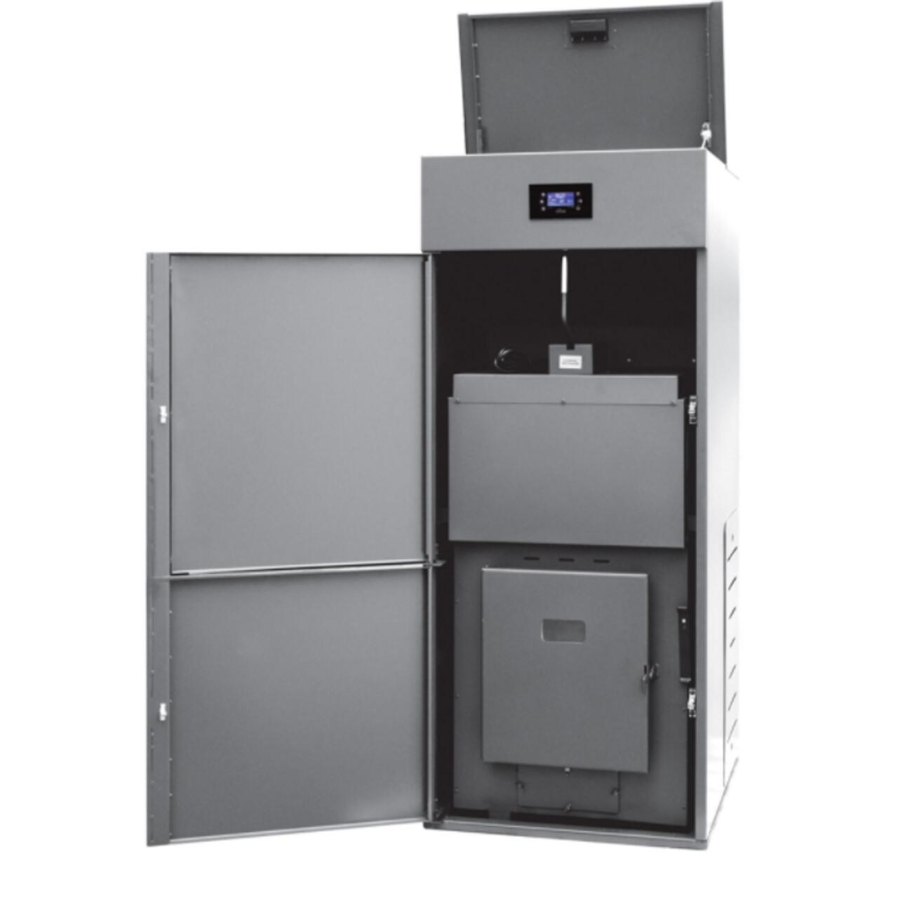Cazanul Biopellet PRO 30 kW are principiul de funcționare bazat pe utilizarea camerei de ardere în depresiune, aceasta fiind complet etanșă astfel încât fluxul de aer este controlat de ventilatorul de evacuare, montat pe partea din spate a cazanuluiControlul arderii este optimizat folosind un algoritm de modulare, care scade automat dozarea peleților și a aerului pe măsură ce cazanul se apropie de temperatura dorităCazanul este dotat cu panou de comandă digital care afișează ora și data, activarea cronometrului, puterea de ardere și regimul de lucru, cod de eroare, temperatura setată a cazanului, modul de iarnă/vară