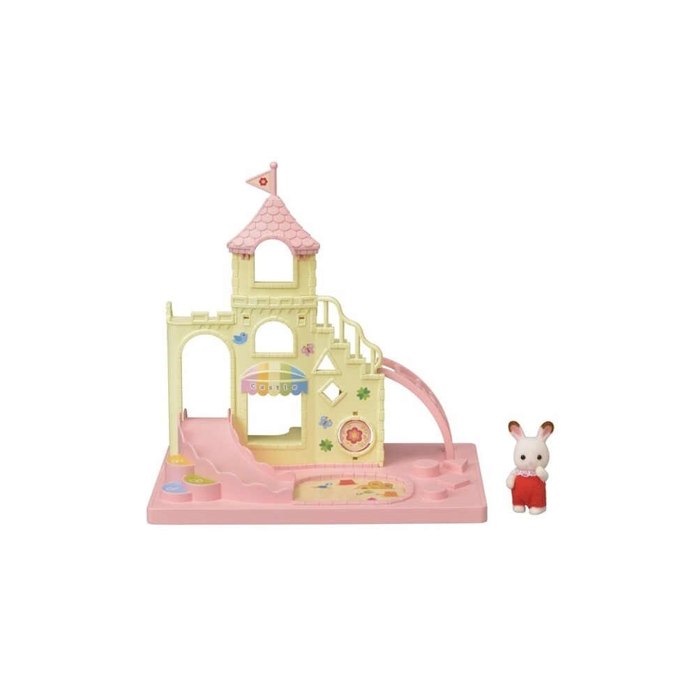 Pentru un set complet, include o figurină Creme Chocolate Rabbit Baby, un tobogan, o scară, o cutie de nisip și alte accesorii distractive