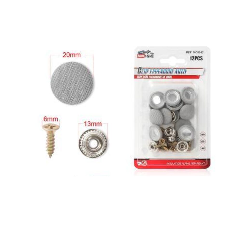 Setul conține 12 bucăți, cu dimensiuni specifice pentru șuruburi și capse.
