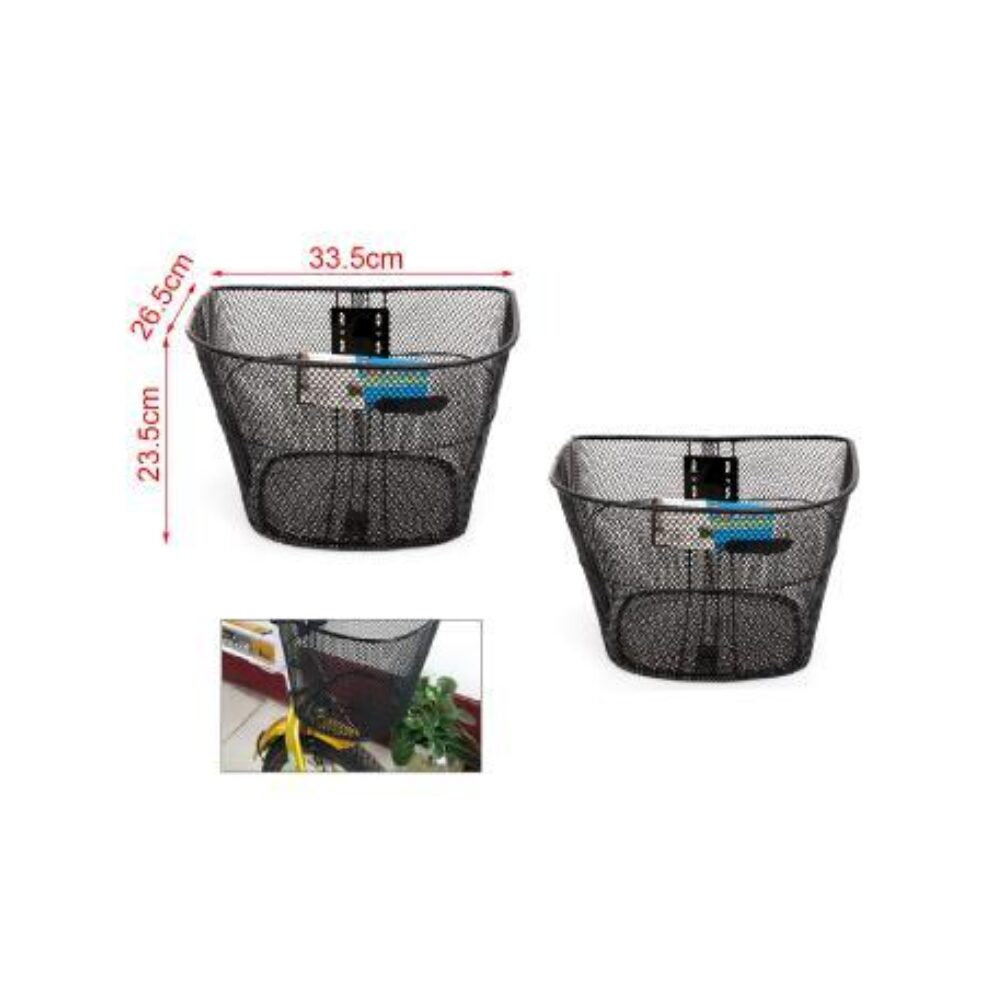 Coș de cumpărături metalic negru pentru bicicletă.