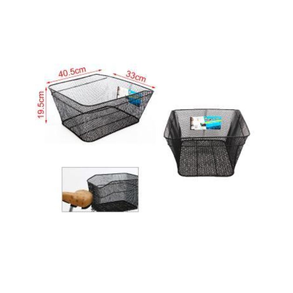 Coș de cumpărături din fier pentru bicicletă. Aceste coșuri sunt accesorii utile pentru transportul mărfurilor ușoare, cum ar fi alimentele, pe bicicletă.