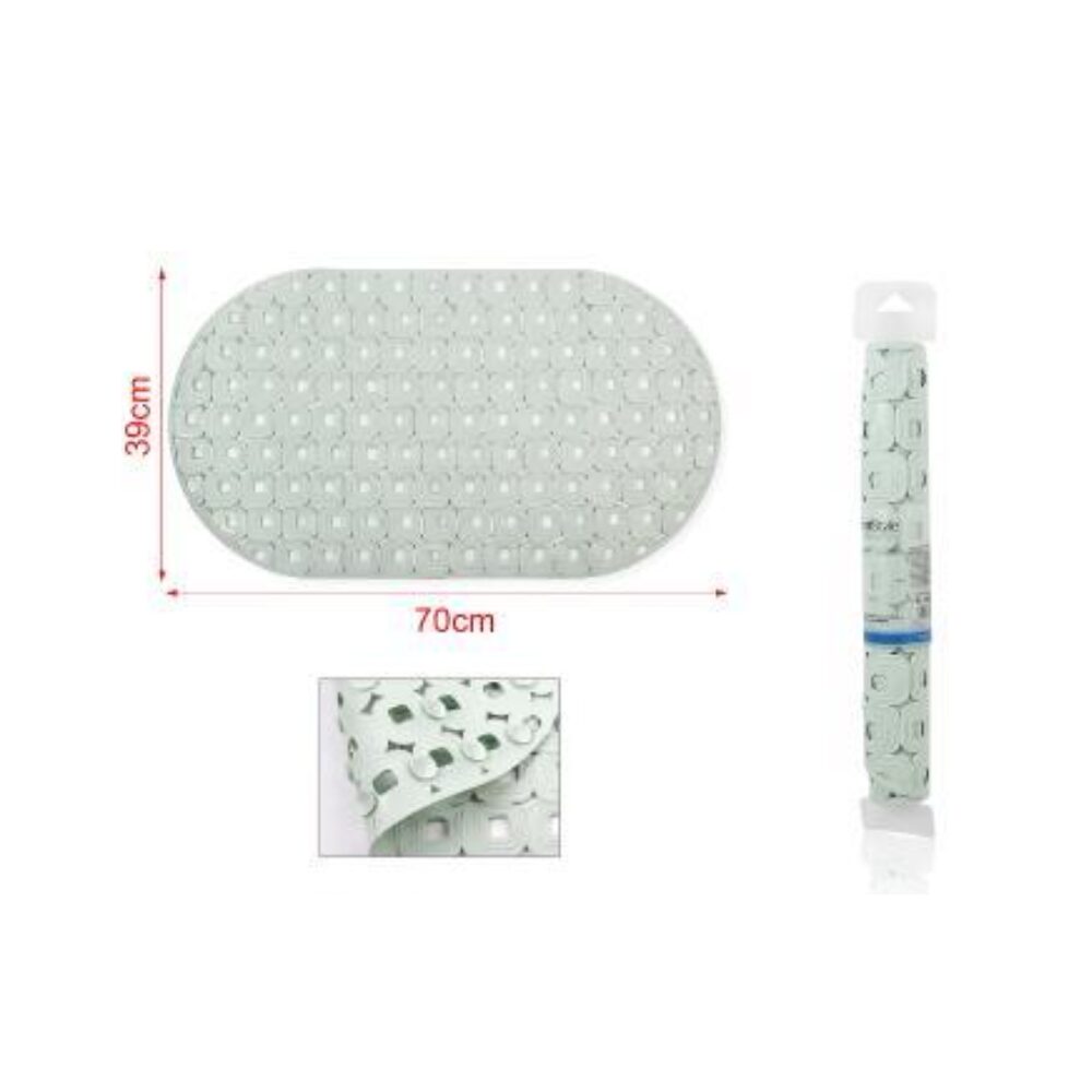 Covor de baie oval antiderapant. Are o suprafață antiderapantă cu orificii de scurgere și este lavabil
