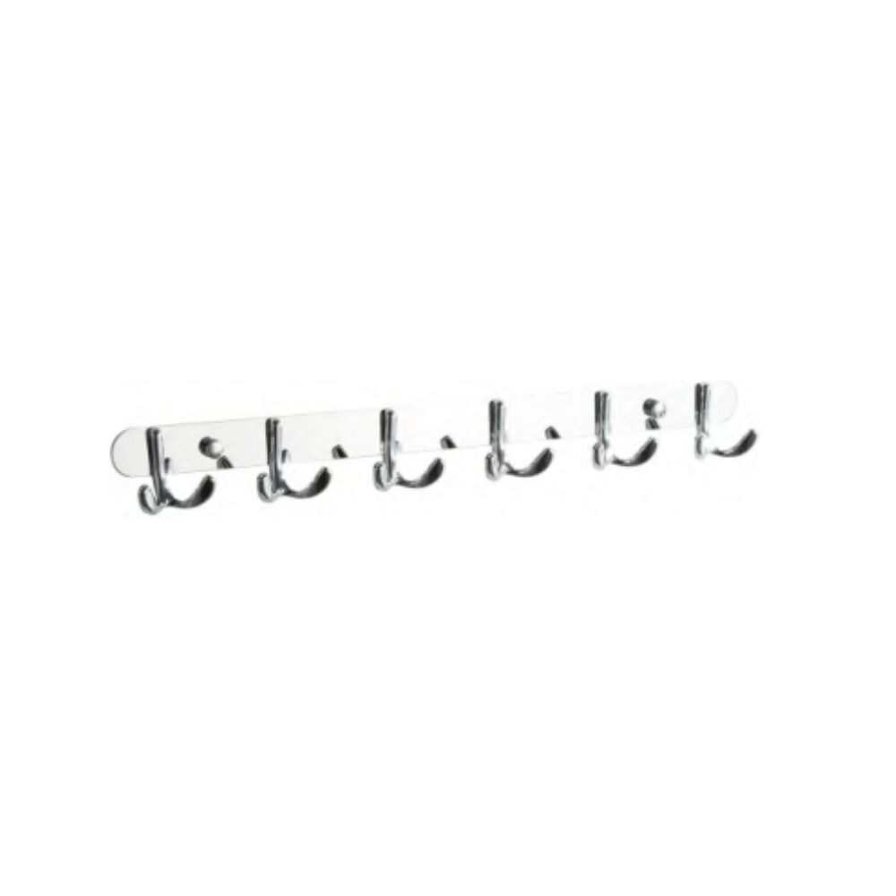 Cuier cu șase cârlige, aliaj zinc + inox, cromat.