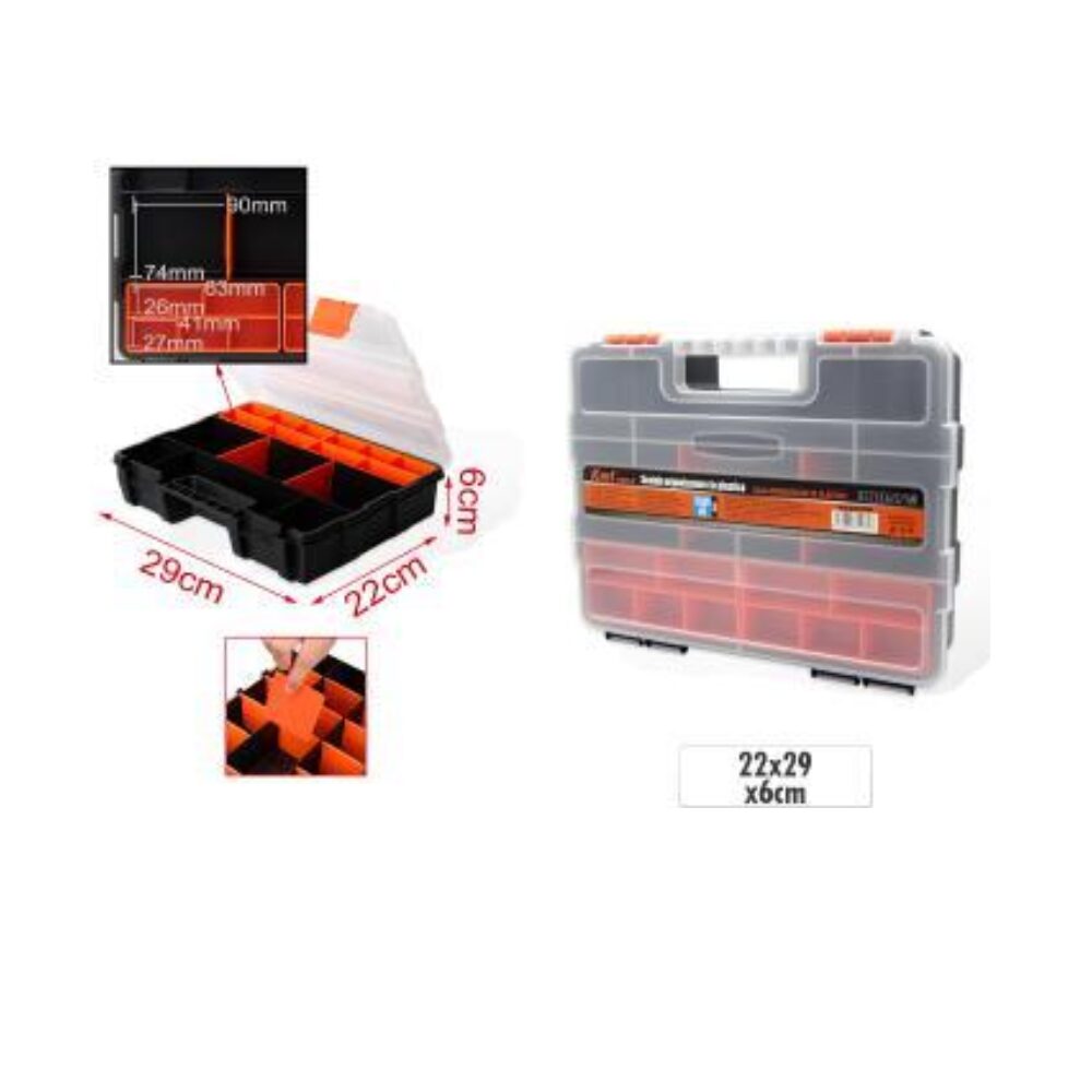Cutie organizatoare din plastic, compartimente detașabile.
