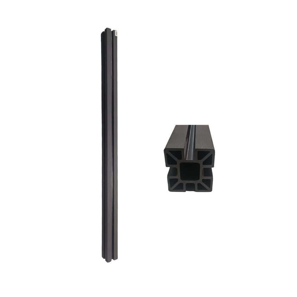 Stâlp de gard realizată din CWPC, material compozit din fibre de lemn și polimeri, destinată utilizării la exterior, cu rezistență ridicată și întreținere minimă.