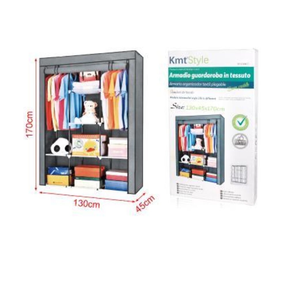 Dulap portabil din material textil cu o structură de susținere din metal și plastic.