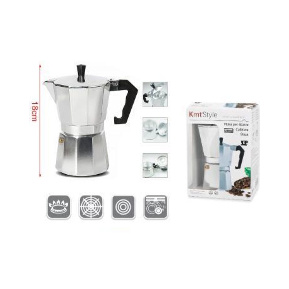 Cafetieră tradițională italiană din aluminiu, concepută pentru a prepara 6 cești de cafea espresso. Potrivită pentru plite pe gaz, electrice și vitroceramice, rezistentă la căldură și oxidare și include o valvă de siguranță.