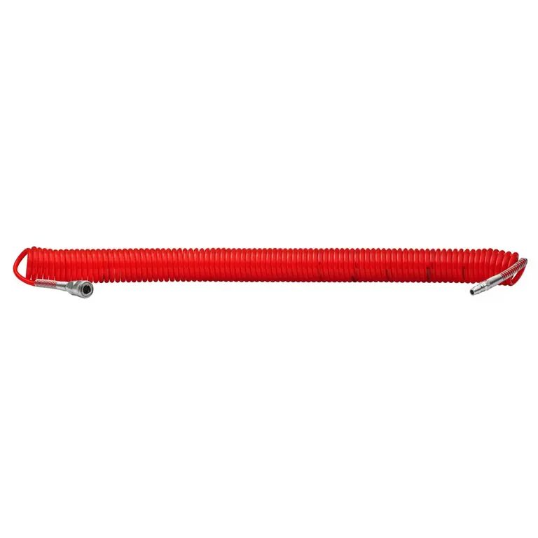 Furtun spirală pentru aer comprimat, ideal pentru alimentarea sculelor pneumatice.