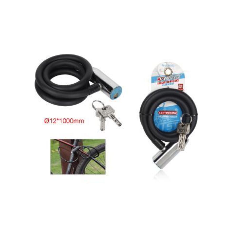 Aantifurt pentru bicicletă (cablu de oțel) cu închidere cu cheie, diametru 12mm, lungime 1000mm.