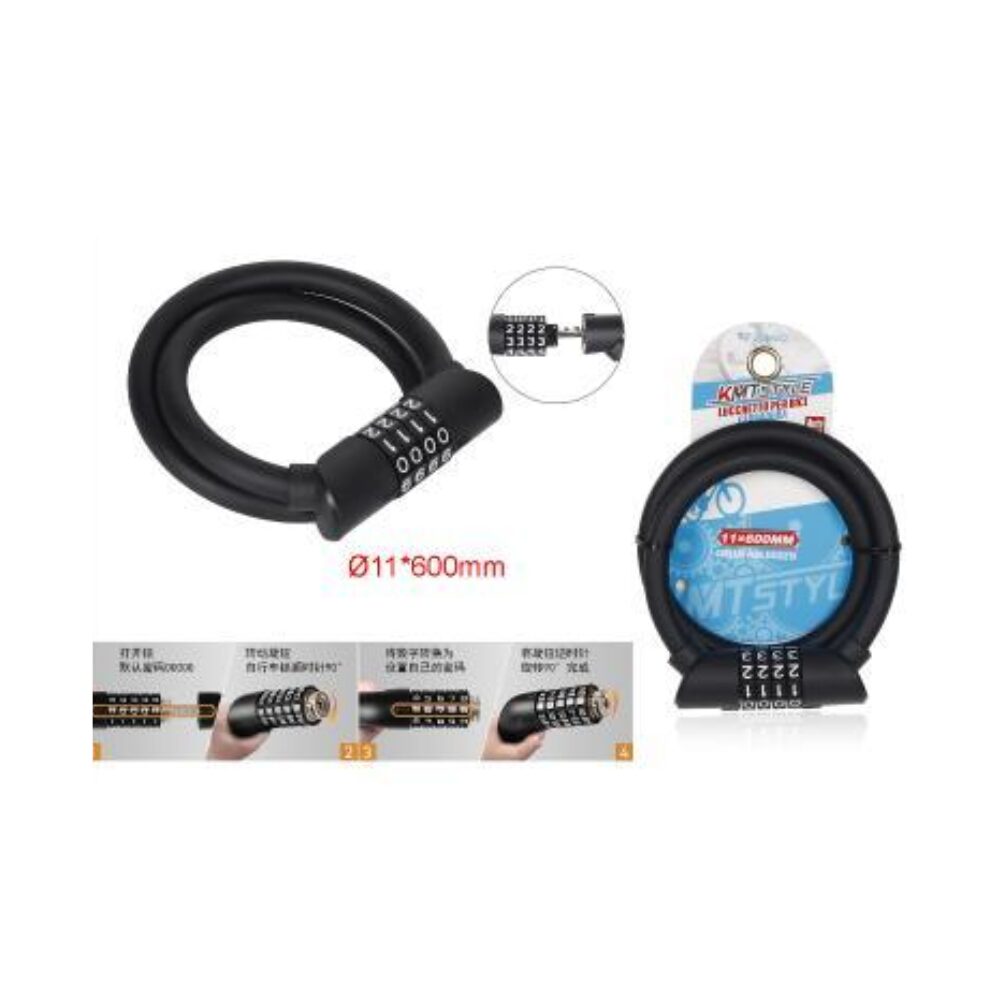 Cablu antifurt cu cifru pentru bicicletă.