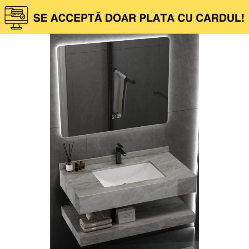 Set mobilier baie – piatră sinterizată & oglindă LED