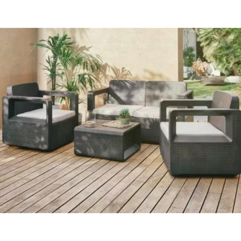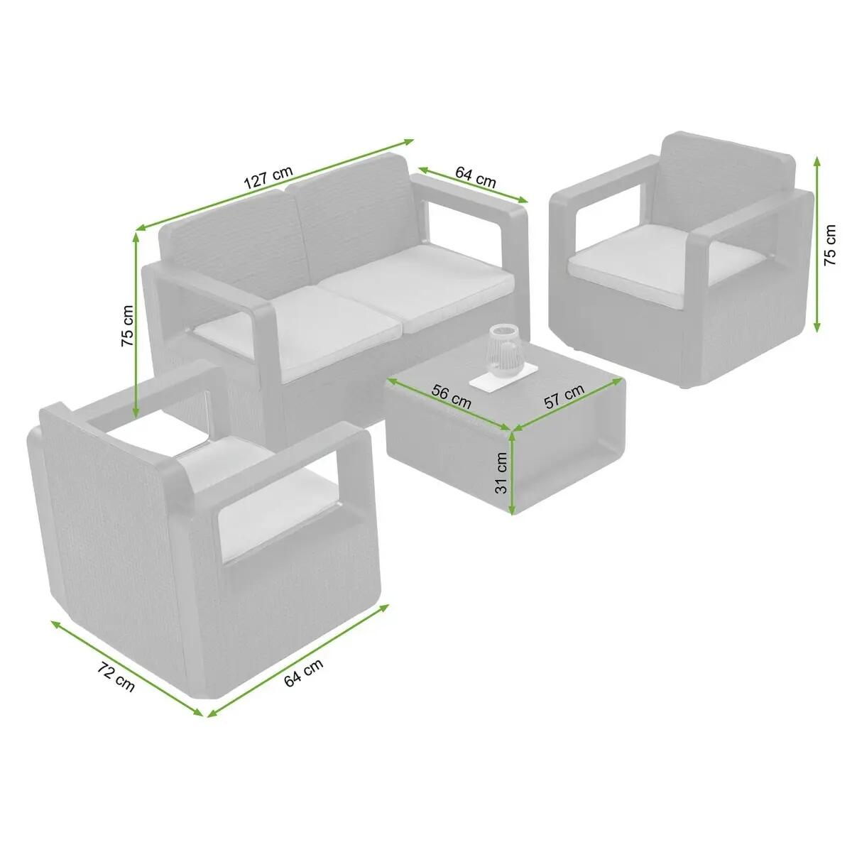 Setul de mobilier APOLO este conceput pentru utilizare în exterior, oferind un echilibru optim între estetică, confort și durabilitate. Realizat din plastic reciclat, cu finisaj de ratan sintetic, este ideal pentru terase, balcoane și grădini.