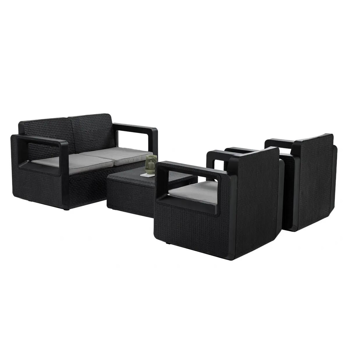 Setul de mobilier VENUS este conceput pentru utilizare în exterior, oferind un echilibru optim între estetică, confort și durabilitate. Realizat din plastic reciclat, cu finisaj de ratan sintetic, este ideal pentru terase, balcoane și grădini.