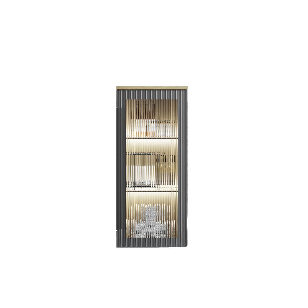 Structură: cadru din aliaj de aluminiu, MDF melaminat cu aspect de lemn + elemente din sticlă.