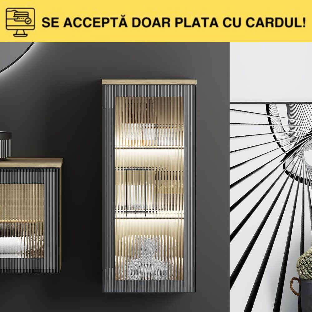 Dulapul suspendat se poate integra armonios altături de seturile: MOB.BAIE 1S WOOD GRAIN YC1009-080cm (cod produs 2025050201069) și MOB.BAIE 1S WOOD GRAIN YC1009-120cm (cod produs 2025050201090).