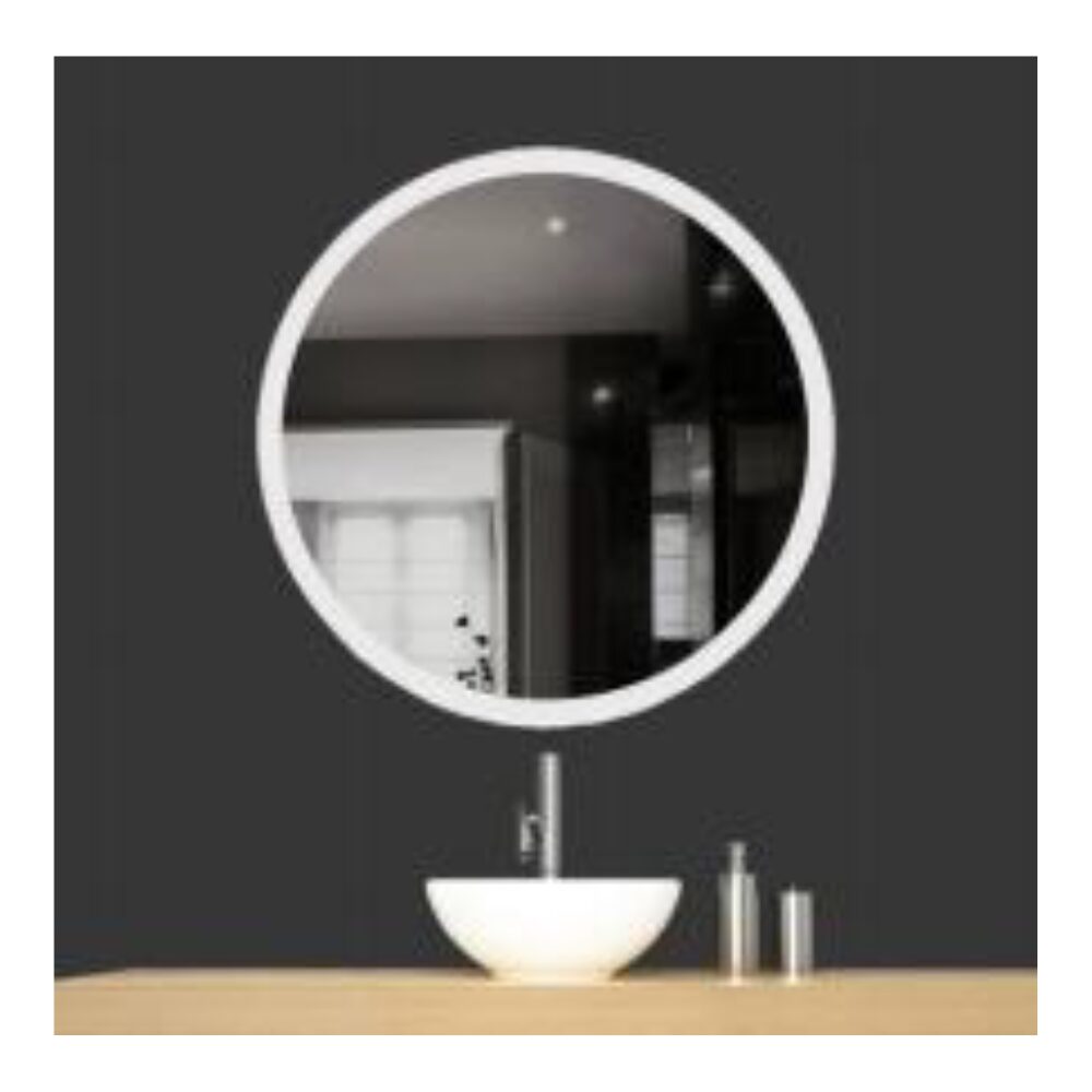 Oglindă elegantă cu sticlă de 5 mm, spate din PVC închis, dotată cu doi senzori tactili pentru controlul luminii și al funcției de dezaburire. Iluminare LED alb rece 4500K, perfectă pentru băi moderne.
