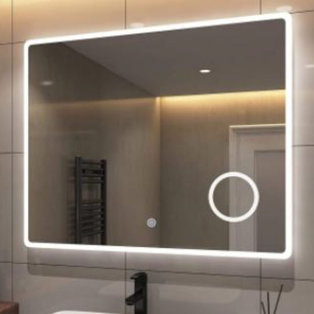 Oglindă modernă, realizată din sticlă de 5 mm, cu lupă integrată pentru detalii precise (ideală pentru machiaj sau bărbierit). Spatele este complet închis cu PVC pentru siguranță și durabilitate. Echipată cu doi senzori tactili pentru controlul iluminării LED (4500K) și al funcției de dezaburire, oferind o experiență completă în baie.