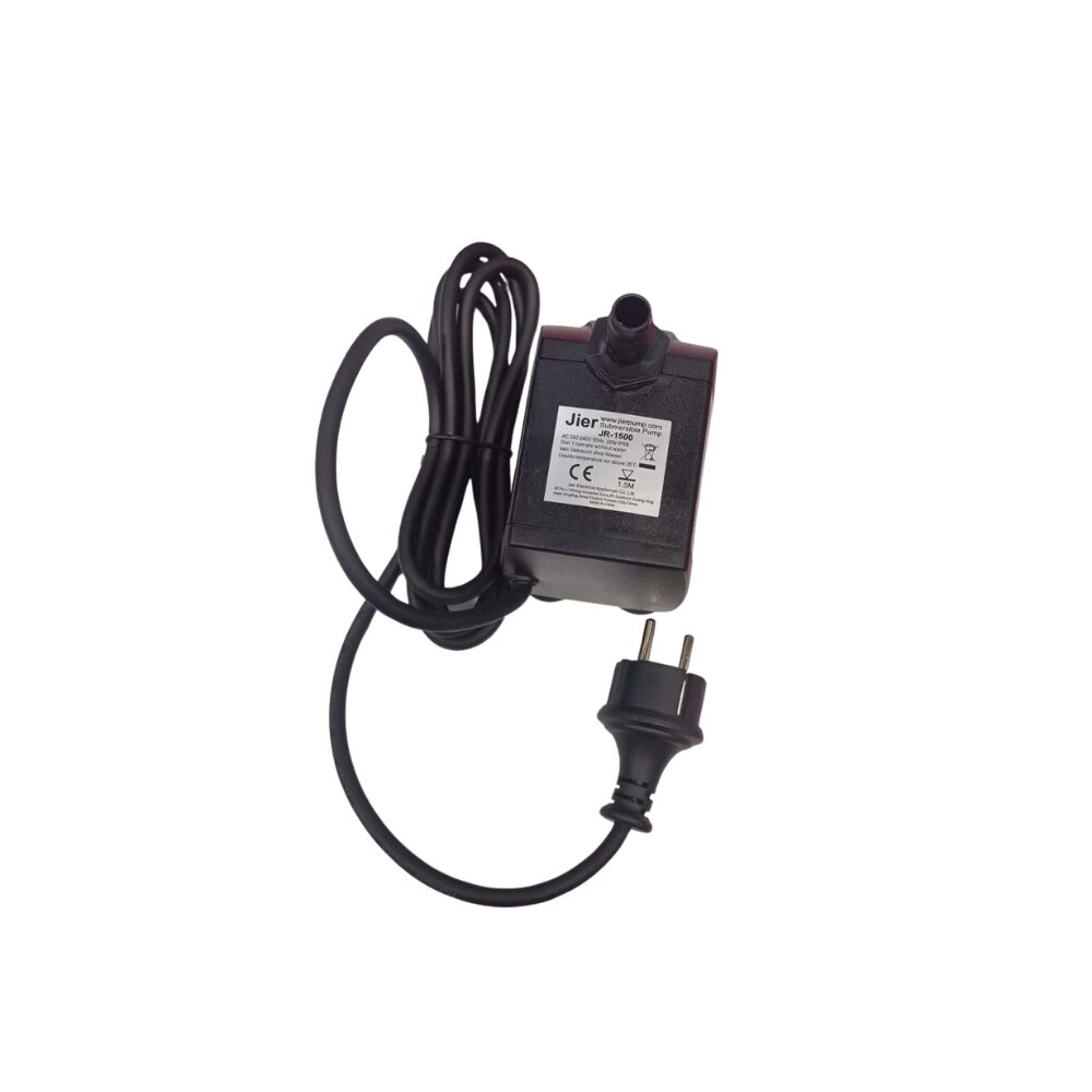 Pompa submersibilă Jier JR-1500 este destinată circulării apei în acvarii, fântâni decorative sau sisteme mici de recirculare a apei. Dispozitivul este proiectat pentru funcționare continuă în mediu submersibil și are un design compact și silențios.