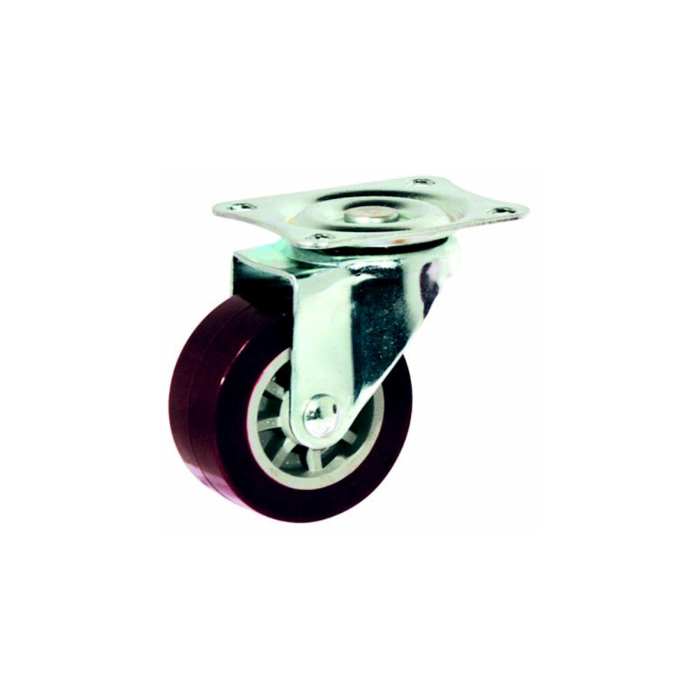 Roată pivotantă din PU cu miez din plastic, furcă și flanșă din oțel.