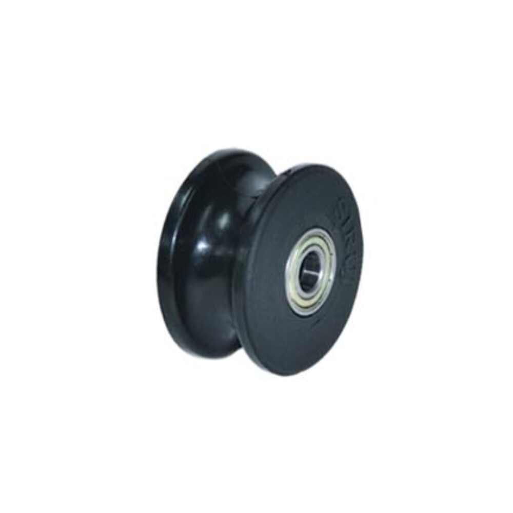 Rolă din plastic negru pentru scripete, cu rulment cu bile, diametru 50mm.