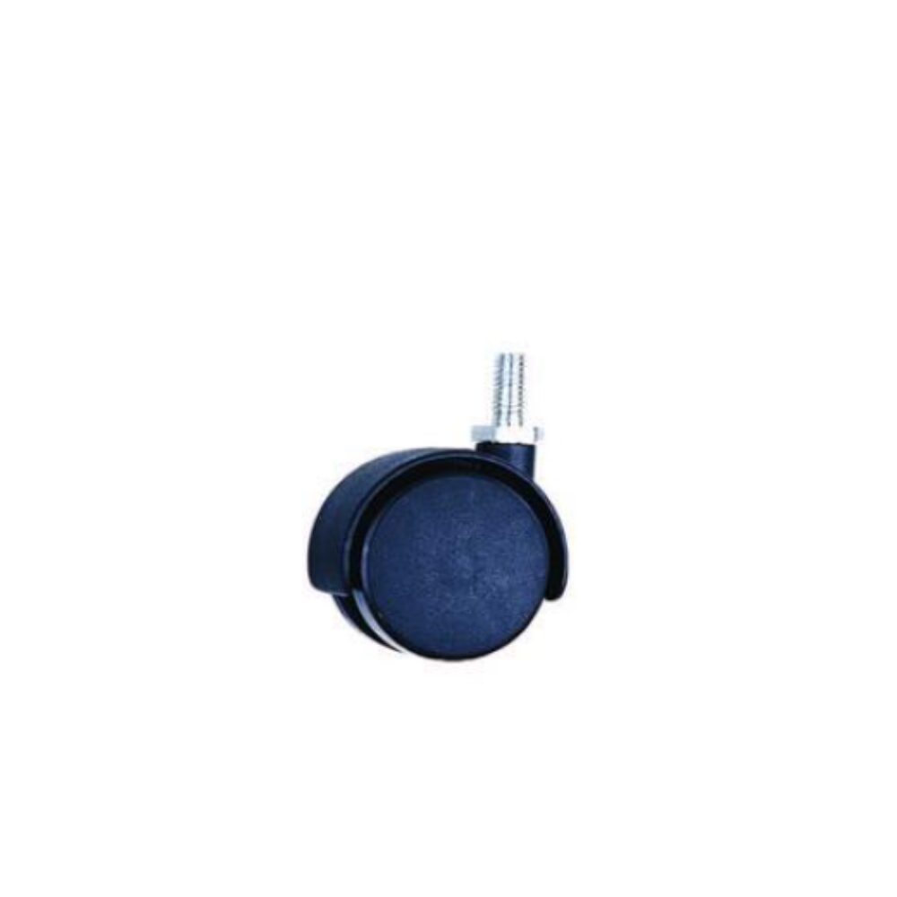 Roată pivotantă din plastic negru cu filet pentru scaun de birou, utilizată pentru a permite mobilitatea scaunelor.