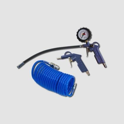 Set de bază pentru compresor pentru umflarea anvelopelor și curățarea cu un pistol.