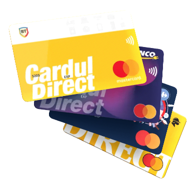 Plata în rate fără dobândă prin Cardul Direct de la BT Direct.Poți plăti în 6 rate fără dobândă la sediul nostru sau în 3 rate fără dobândă online, prin Programul „Rate Oriunde”.