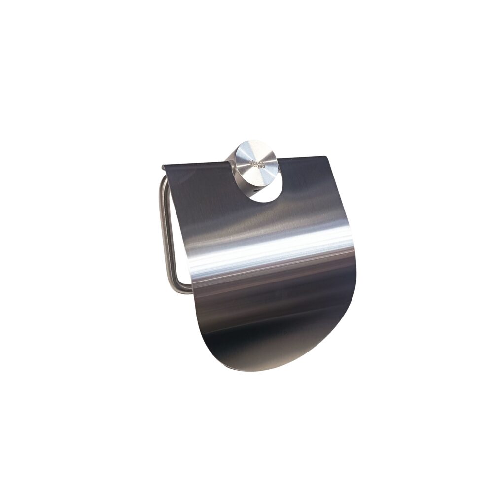 Suport cu capac pentru hârtie igienică, inox, nichelat.