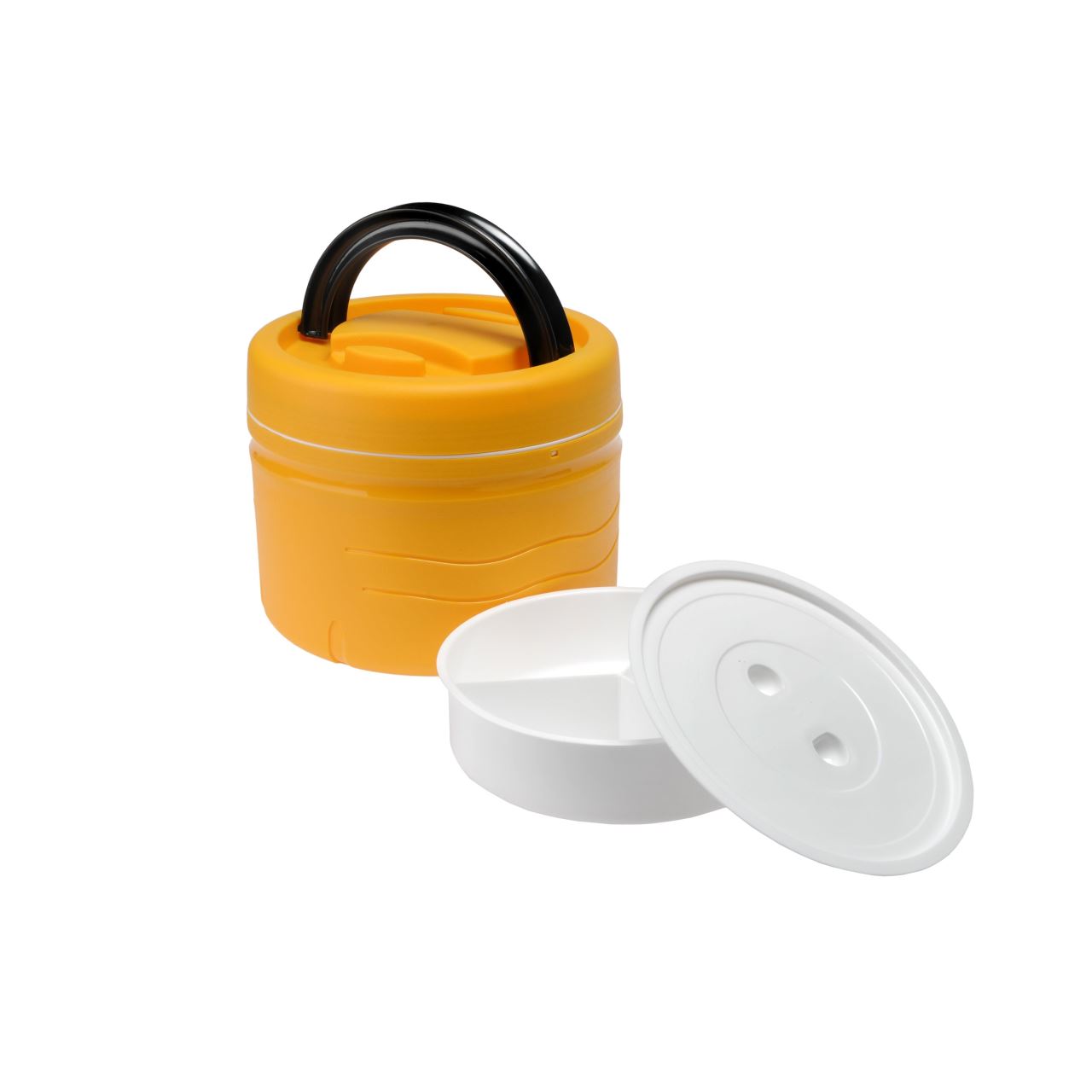 Un termos de prânz încăpător este izolat cu spumă poliuretanică. Are proprietăți foarte bune - izolează bine, asigurându-se astfel că alimentele depozitate rămân calde mult timp. Vasul menține alimentele la temperatura potrivită până la 4 ore, așa că va fi potrivit pentru utilizare nu numai iarna, ci și vara. Plasticul folosit pentru producție este rezistent la zgârieturi. Produsul trebuie spălat manual. Capacitatea este de 3 litri Dimensiunile sunt: inaltime - 17 cm si diametru 21 cm. Termosul cântărește 0,6 kg. Termosul de cină va fi util la serviciu sau în timpul călătoriilor. Datorită mânerului bine modelat și solid realizat, purtarea acestuia este convenabilă.