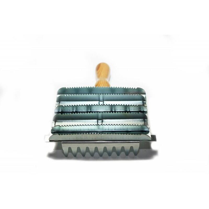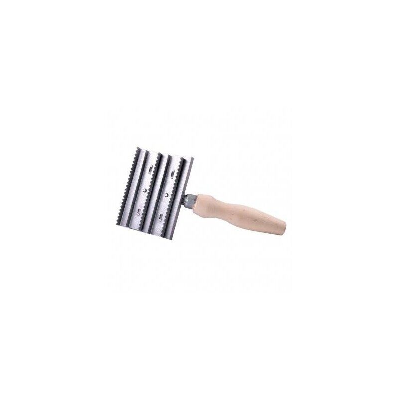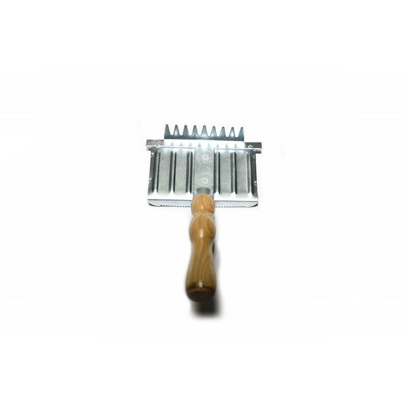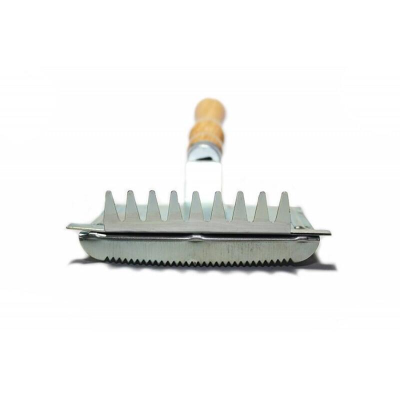 Unealtă de metal dințată cu maner din lemn, cu care se curăță pielea și părul vitelor (îndeosebi la cai).
