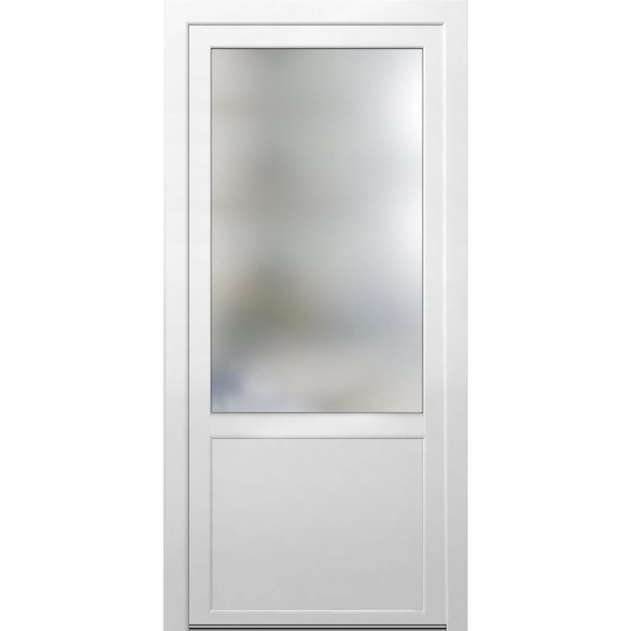 Ușa are dimensiunile specificate cu tot cu toc și sistem de închidere tip broască, este realizată din PVC, prevăzută cu panel și ranforsată cu armătură de oțel.